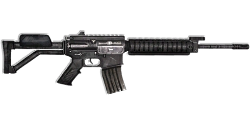 The weapon is almost identical to the Colt M4A1. More specifically, the Assault Rifle is visually similar to the CAR A4 LAR-15M, without the traditional triangular rear sight or the traditional front sight. This weapon also features an IWI Galil-like skeleton stock, with a cheek rest on top of the stock - rather than the traditional adjustable stock found on typical M4/AR platforms. Additionally, while most Galil stocks are foldable - there is no evidence to suggest this rifle has the ability to fold the stock. However, some Galil stocks also have buffer tube inserts, which is what this particular rifle most likely has. The weapon's front sight is folded down in the Black Market image. For more details, see the Trivia section.