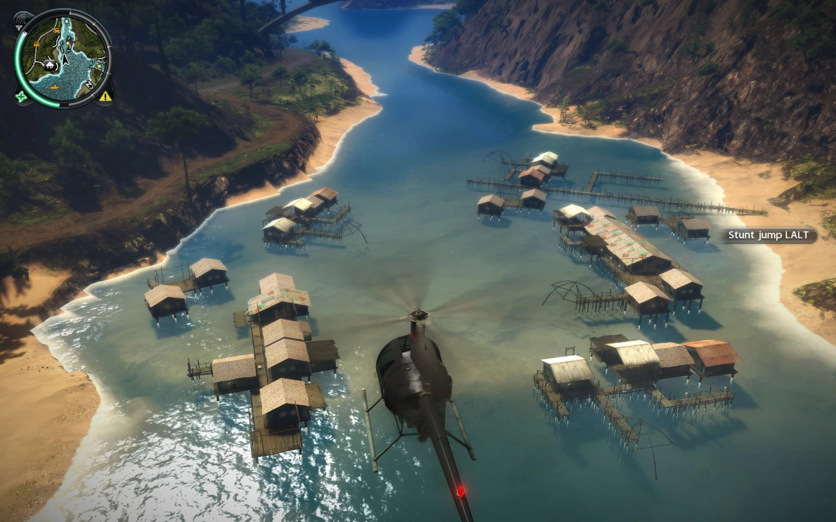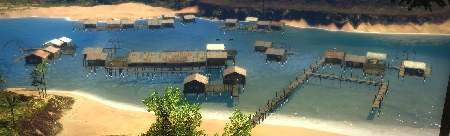 It's a small fishing port with at about 20 to 30 small houses, built on piers in the strait. One is much bigger than the others and may be some sort of Market.