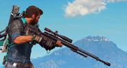 - One Black Hand mercenary wields this weapon in the mission The Heist Begins, although he does not actually fire sniper rifle rounds from this weapon toward Rico. He does aim at him, but no bullets actually come out of it.