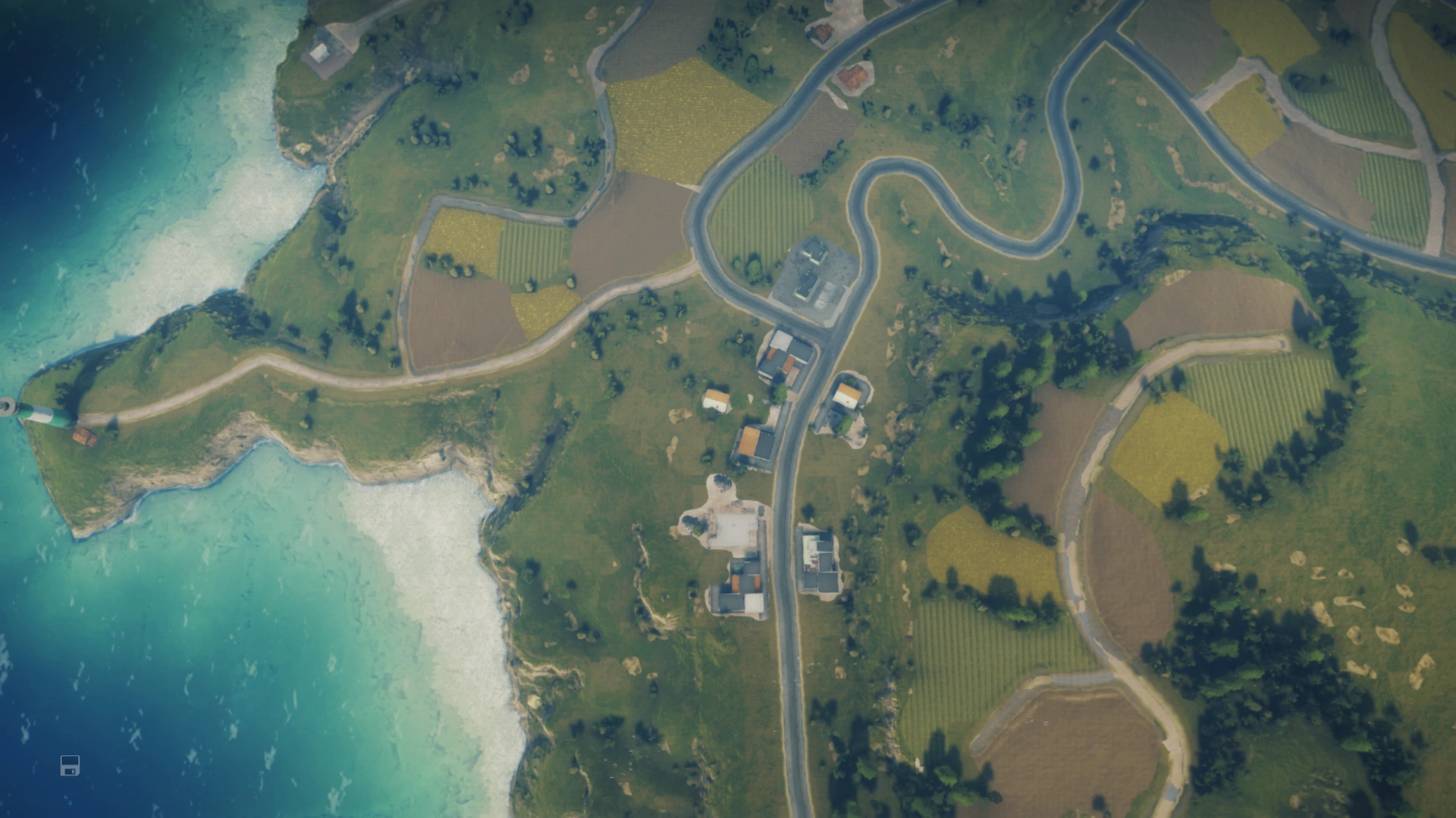 It's a small town. The town has an Espetrol station, lots of wheat fields, a few scattered farms on its outskirts and a lighthouse on a peninsula to the east. The town is also surrounded by lots of wavy roads.