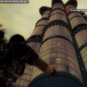 There are soldiers in front of the building that, while are not needed to be killed, are recommended to eliminate since they will constantly be shooting at you. There's also a Demolition Officer that will throw triggered explosives at you, so keep a distance from him. One method to kill the Demolition Officer is by shooting or grapple him to one of the cars available and ride it until he bleeds out and dies. Make sure that you are in a safe distance from him because immediately after you kill him because a number of his grenades deploy from his belt and blow up. Afterwards, Maria informs you that soldiers have planted breaching charges to get to Karl Blaine and that you must grapple your way up. If you are new to the game and don't know how to climb up the building check the intel section of your PDA. Once you reach the top, there will be soldiers guarding the bombs. On each tower, there will be three guards around each bomb. There are also two weapon boxes on each tower, both containing one assault rifle each. The bombs are located near the edge by the door, and there will be an indicator so they can't be missed. Once all troops have been eliminated and all bombs disarmed, Maria informs you that the Panau Military has sent helicopters to kill Karl Blaine. They must be taken down in order to save Blaine. One way to do this is to hijack the first helicopter and then use the helicopter's miniguns to shoot down the second one. Alternatively, you could just shoot down the first helicopter with the assault rifle and the second helicopter won't show up. If you don't know how to hijack the helicopters, check the intel section in your PDA.