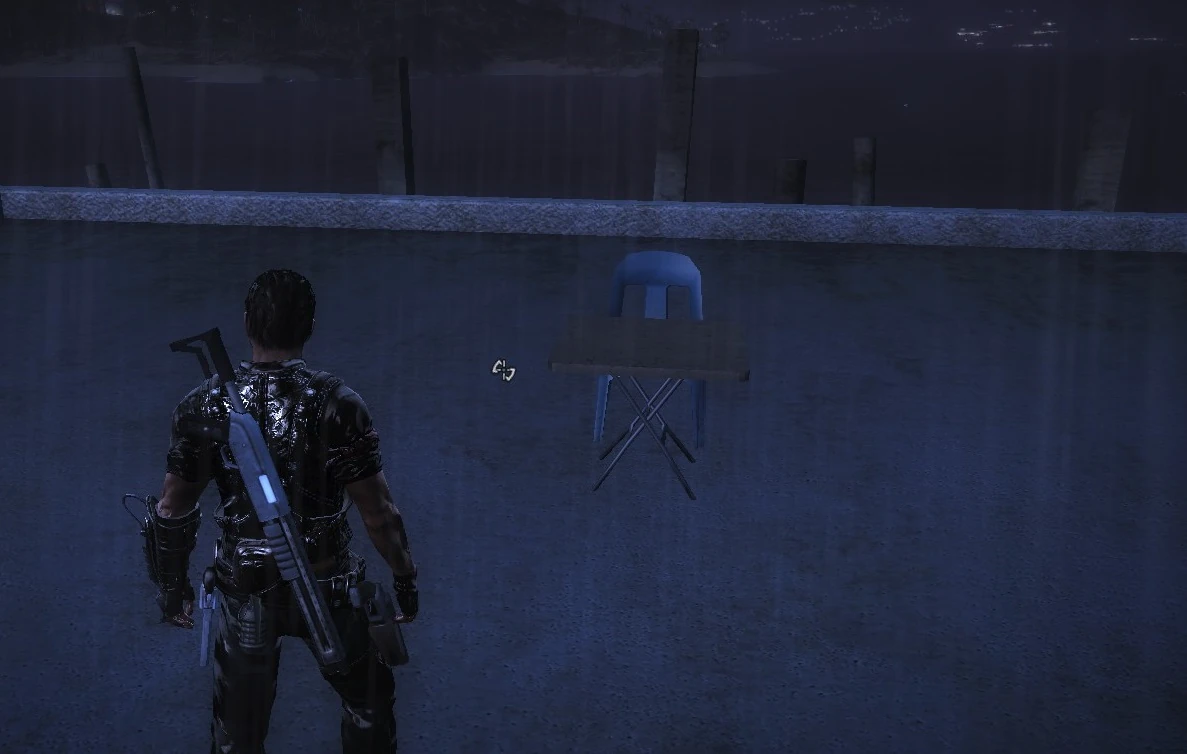 There's a desk and chair at the end of a pier at Pekan Badak Bermandi, about X:18210; Y:21540. This is a reference to the movie "I Am Legend". For more info, see the video at the bottom of the page.