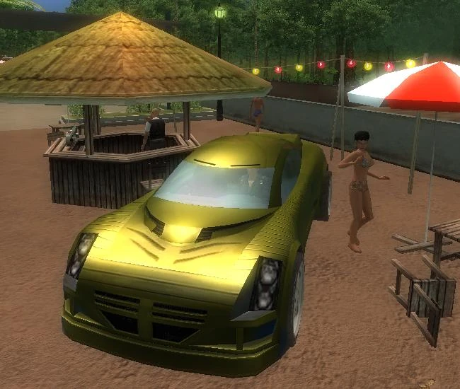 It has some vague similarities with multiple real cars. For example, its front bumper and fenders resemble the Gumpert Apollo, while its hood vents have a similar top-view silhouette to the second generation Lotus Elise. It also has headlights similar to those seen on the first generation Cadillac CTS.