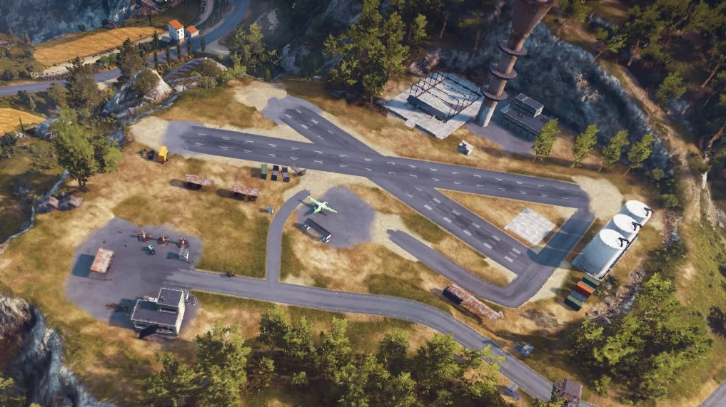This is one of the most realistic airports in the game, containing taxiways, aprons, an air traffic control tower (although in real life an airport of the size wouldn't need one as big, because there would be few traffic).