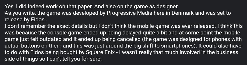 Christofer Sundberg replied to being asked about this game. He referenced the then recently announced Just Cause: Mobile. Link to tweet.
