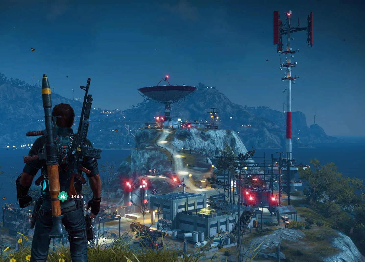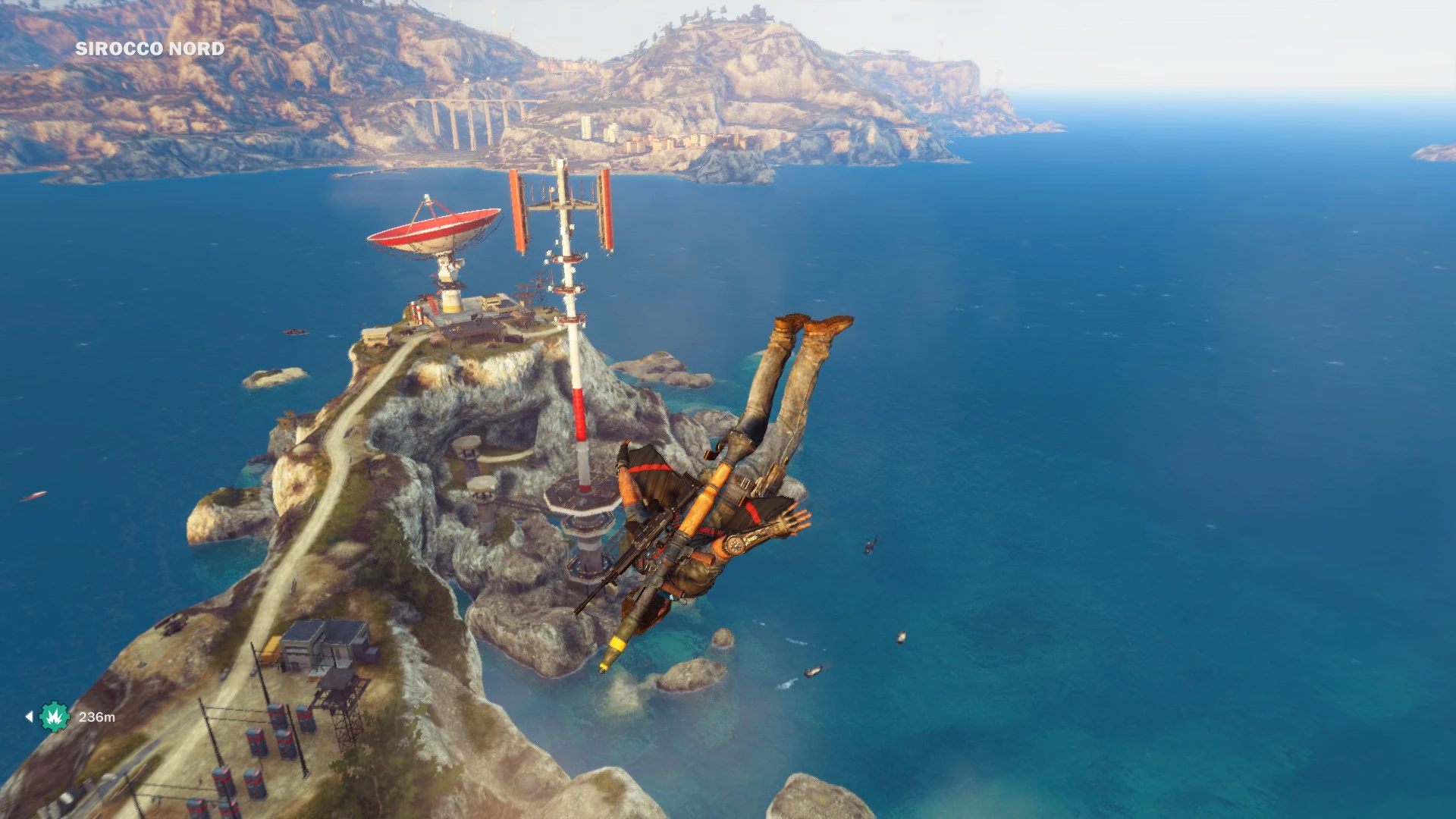 In-game map description: "Mysterious Le Tutor stand guard atop a tiny, weathered island. The giant dish here intercepts radio signals from as far away as Libya and Croatia, ensuring Di Ravello's security by providing him with valuable insight into the political turmoil of the region."