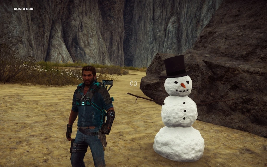 This is a continuation of the Easter Egg in Just cause 2. Mr. Snowman is located in southern Costa Sud, at the bottom of a canyon. If Rico approaches the Snowman it triggers the voice line "So we meet again, Mr. Snowman".