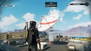 These radar dishes are absolutely massive. They are the largest chaos object in the entire game and have a value of 10,000 chaos points. These huge dishes are massive and are heavily reinforced by strong structural support, so they takes lots of firepower - over three tank cannon rounds (when shooting at the right spot, over seven when shooting other spots) - to destroy. Like their JC3 counterparts, using any explosive weapon on any area of the dish will blow a hole through it. Due to their gigantic size, it takes seven or more explosions in separate areas of the dish to blow enough holes into the structure so that the entire thing shatters into pieces and the foundation topples down. While you can destroy them by using explosives to blow up all the area on the dish, an easier way is to shoot the base. Only three to five cannon rounds will destroy the base and cause the dish to collapse.