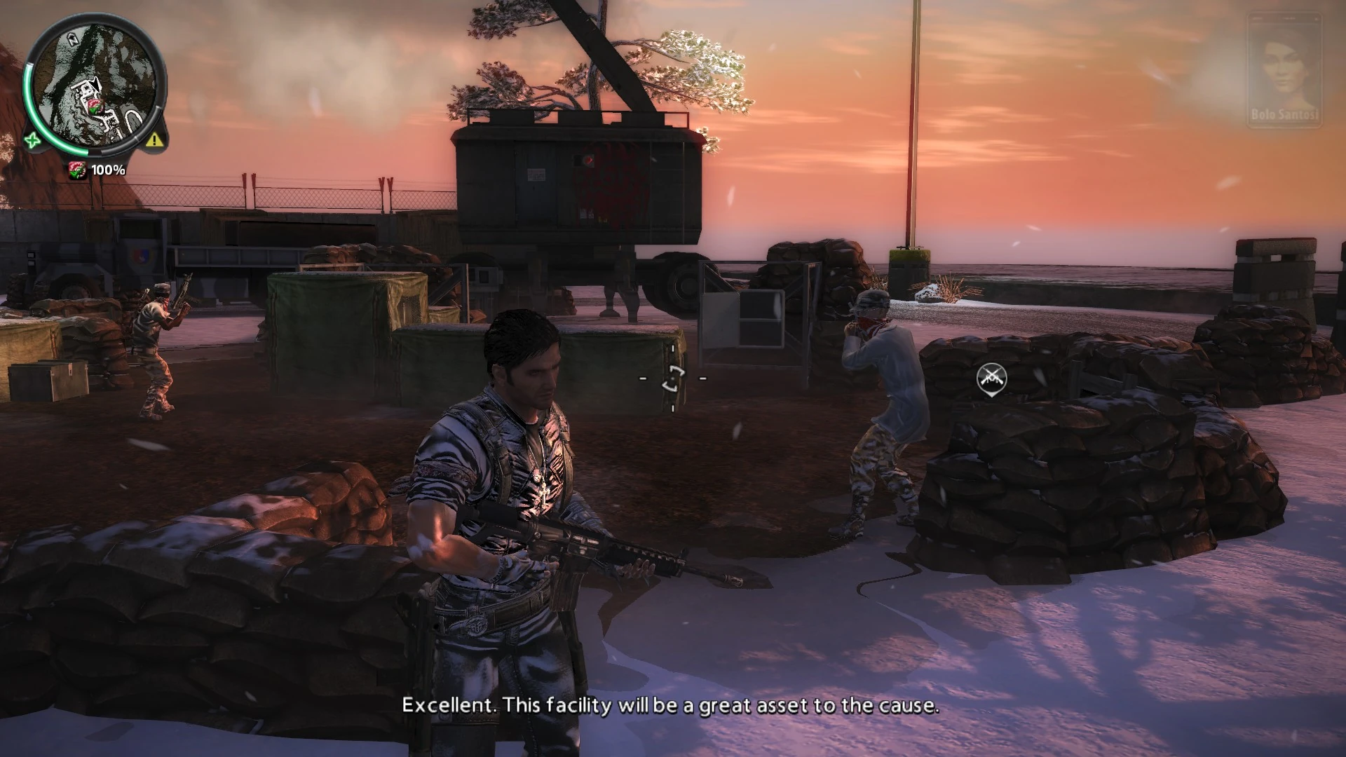 Bolo Santosi, having familiarized herself with Rico, has decided to give him a testing first assignment. The Reapers wish to break into and take control of a large research facility called the Gunung Gila Pangkat Facility, which the Government uses to test out jet and rocket fuel at extremely cold temperatures (which the Berawan Besar Mountains happily provide). Bolo Santosi believes that the secrets that this facility holds are better served in the hands of the Panauan people and so a hostile takeover is necessary.
