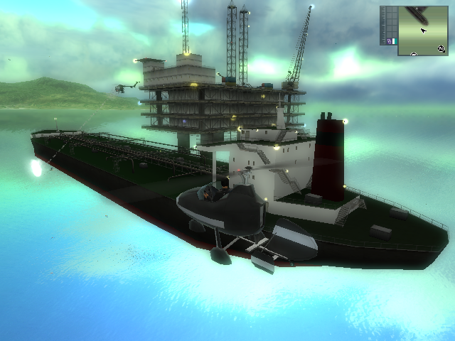 They are by far the largest vehicles in the game, and one of the largest in the Just Cause Game Series. They are so big that they appear on the PDA Maps. They're usually parked at the offshore rigs, but can also be seen in some sidemissions. Usually they don't have anything on deck (other than a system of pipes), but when they appear in the Rioja sidemissions, there's a bunch of wooden boxes and steel barrels lying around the deck. Also, during the mission there are a few ladders leading from the water to the deck.