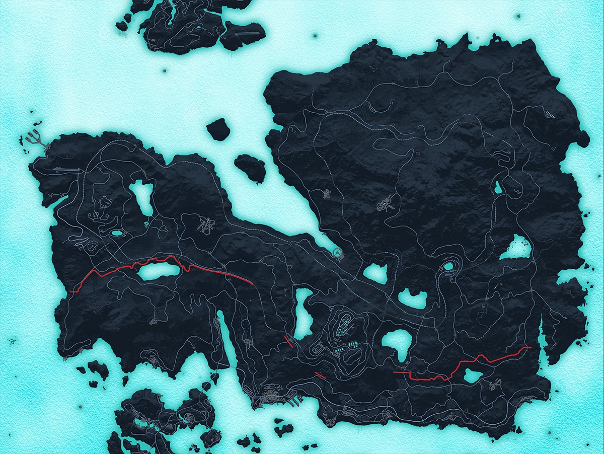 The northern half of Insula Striate is closed off by a large wall that divides the region. This wall follows the southernmost railroad tracks at Rocca Blau and Maestrale, closes the few entrances to the mountainous province of Prospere and cuts Costa Sud in half.